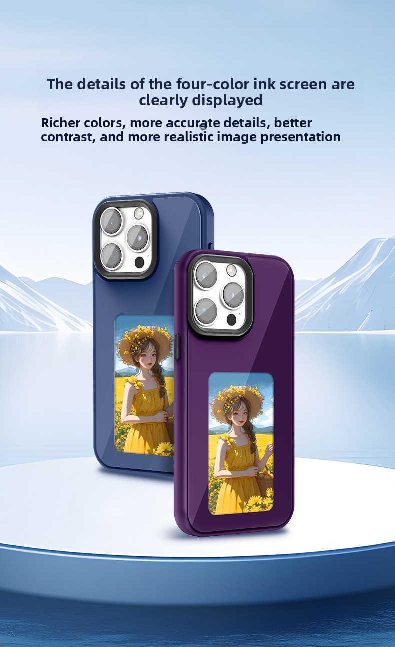 Upgrade your iPhone with the iPhone Magic Case, a smart phone cover that combines style, technology, and protection. Featuring a low-power four-color E-Ink display, it lets you customize designs, images, and messages using NFC or an app. Built with durable TPU and full-edge protection, it guards your phone against drops while adding futuristic functionality. Perfect for users who want personalization, innovation, and everyday protection in one sleek case.